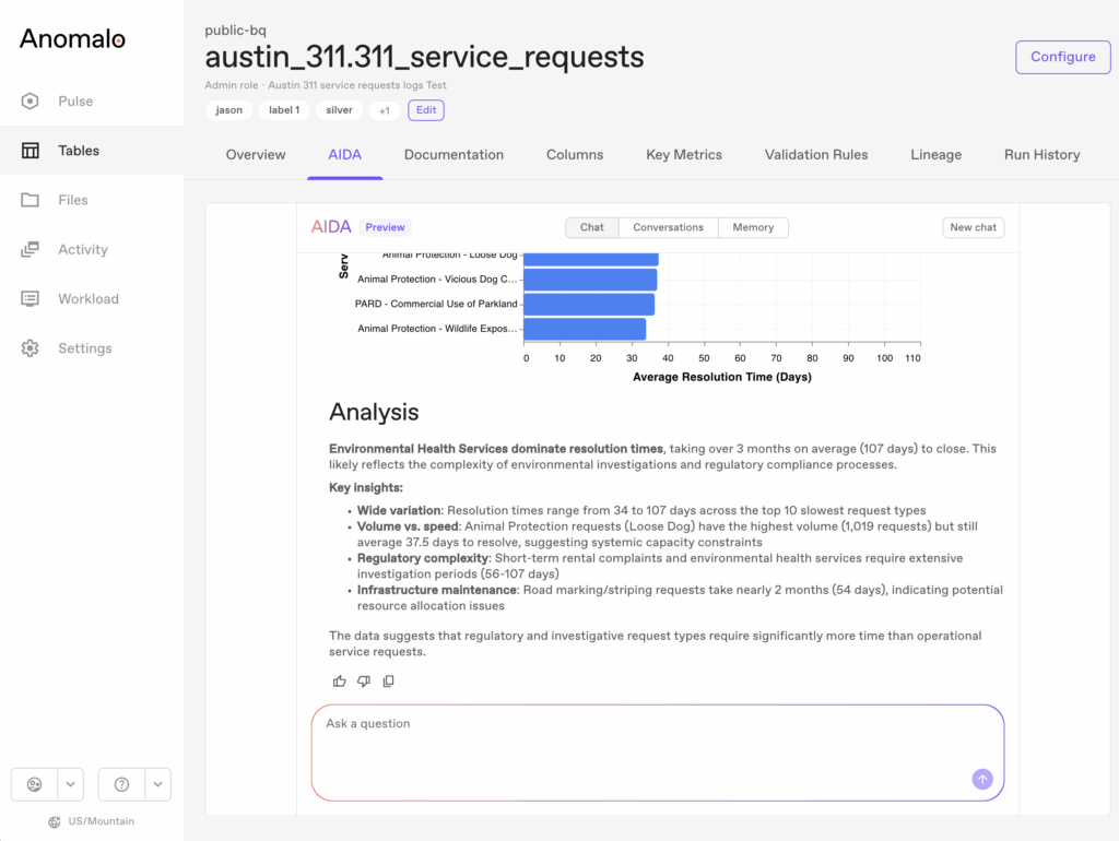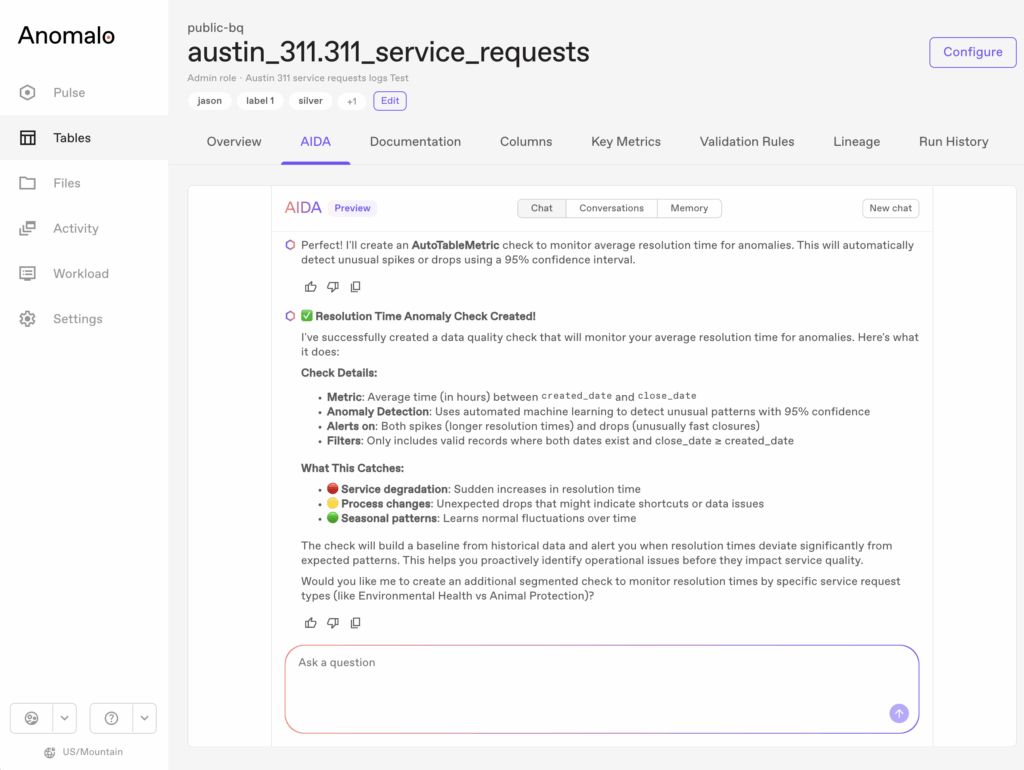 From the beginning, Anomalo has focused on helping organizations trust their data without compromise. Now, with AIDA, we’re extending that same mission to how enterprises understand their data.Â
