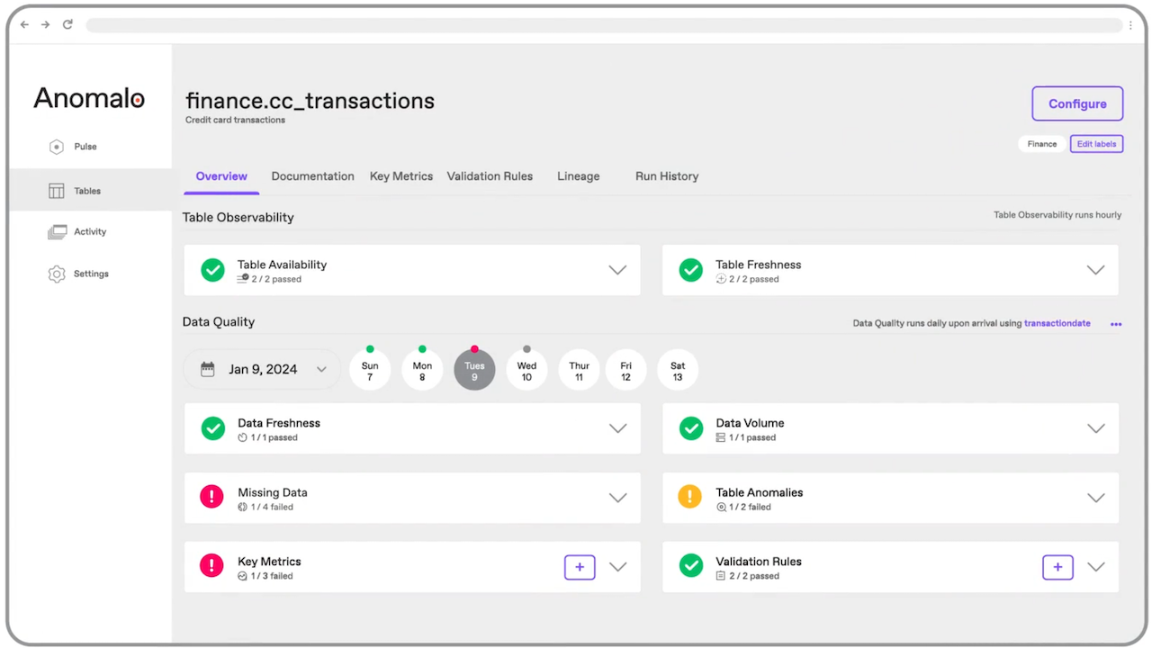 Anomalo powers data quality for some of the world’s most demanding financial services organizations, monitoring thousands of tables, hundreds of thousands of columns, and petabytes of data.